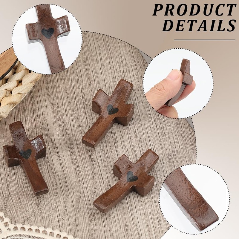 GORGECRAFT Pack of 3 "Cross My Heart" Wooden Crosses Brown Wooden Crucifix In Love Shape To Encourage Fingertip Small Pocket With Thumb To Hold A Hand Cross For Praying Great Christmas East