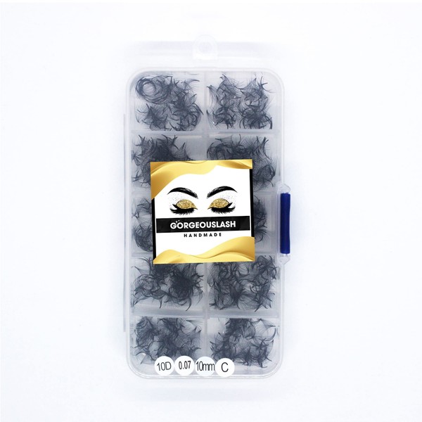 GorgeousLash 1000 Premade Lash Fans. 10D, 8D, 7D, 6D, 5D, 4D, 3D. Eyelash extensions, Handmade! (Curl C- 10D -1000 Fans, 10mm)