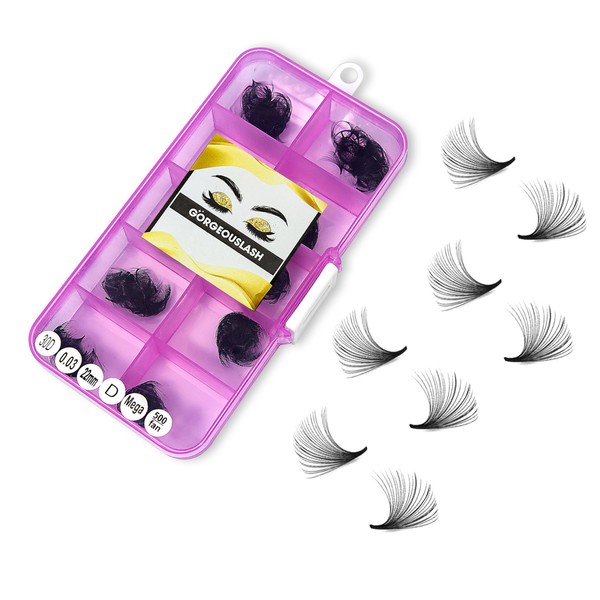 GORGEOUSLASH 30D Lashes, 500 premade volume lash fans, 0.03mm thickness, eyelash extensions (22mm - D Curl)
