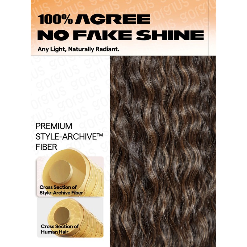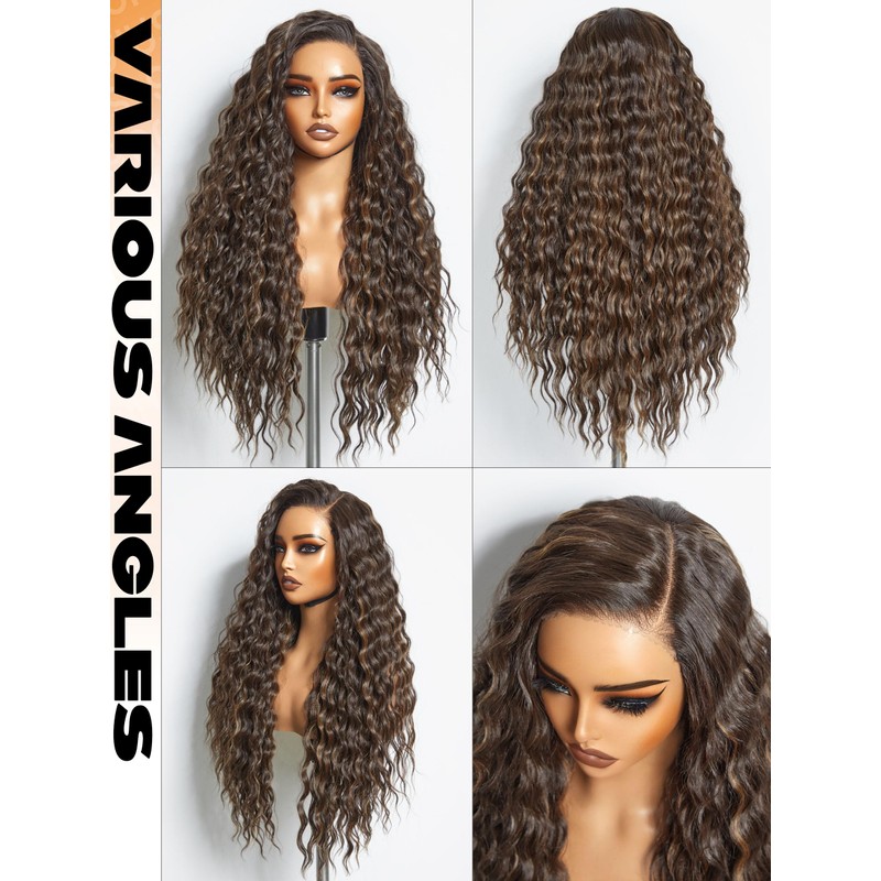 GORGIUS Brown Highlight Ocean Wave Lace Front Wigs Pre Cut Glueless Side Part Closure Wig 28 Inch Synthetic Long Wig