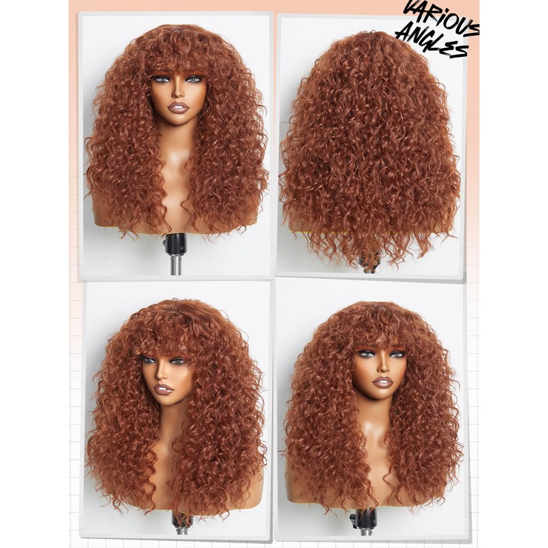 GORGIUS Shaggy Haircuts Curly Wig with Bangs Ginger Brown Wigs Crafted with Style-Archive Technology: Premium Fiber & Remy Human Hair Blended, Realistic Look with True Scalp