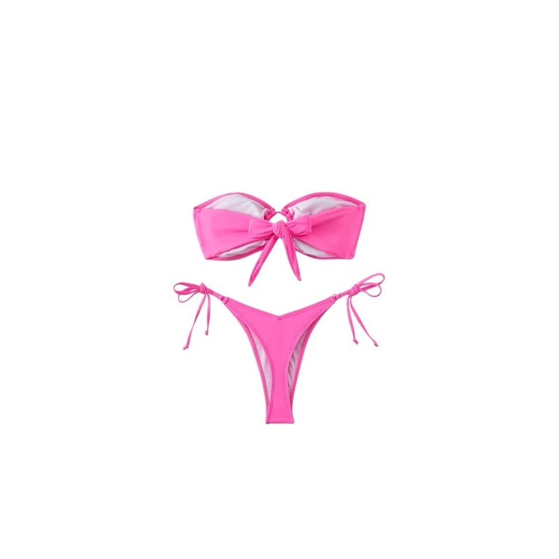 GORGLITTER Women's Bandeau Bikini Sets Strapless Bikini Top Thong High Waist 2-Piece Beachwear Two Piece Swimsuits Bikini with Ring, Hot Pink