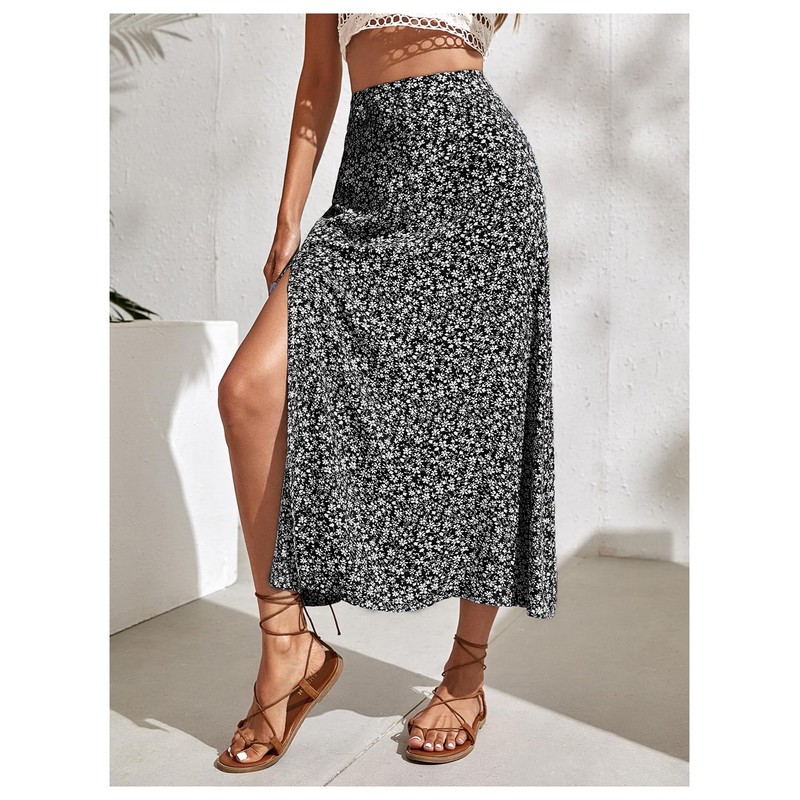 - Design with floral, flared, flowy midi skirt, high waisted, split thigh, boho skirts for women. The a-line silhouette offers a flattering and comfortable fit