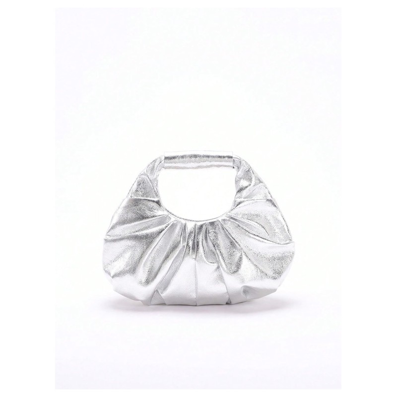 GORGLITTER Women's Clutch Purse Evening Clutch PU Leather Pleated Bag Gold Handbag for Party Prom Wedding, Bright Silver, One Size