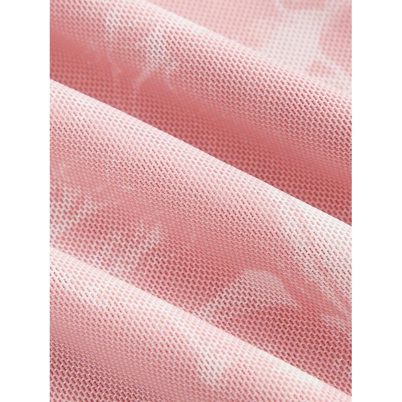 GORGLITTER Women's Floral Ruched Bodycon Summer Wedding Guest Dress Mesh Fishtail Cocktail Midi Sun Dresses 2025 New Pink Large