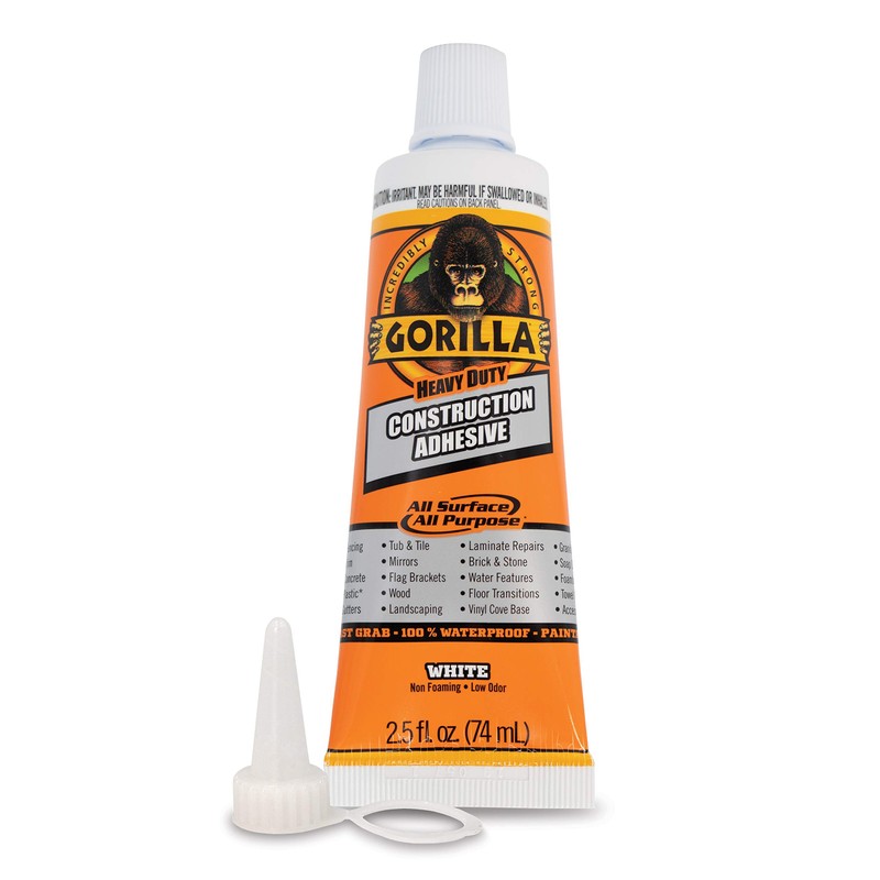 Gorilla 2-Pack Heavy Duty Construction Adhesive, 2.5 Ounce Squeeze Tube, White