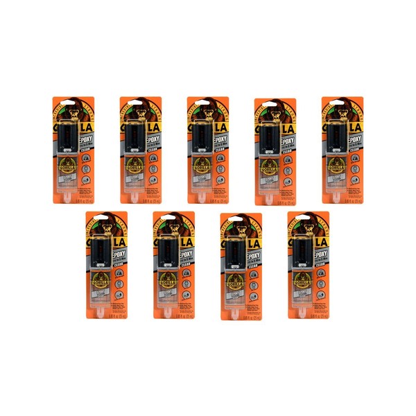Gorilla 2 Part Epoxy, 5 Minute Set, .85 ounce Syringe, Clear, (Pack of 9)