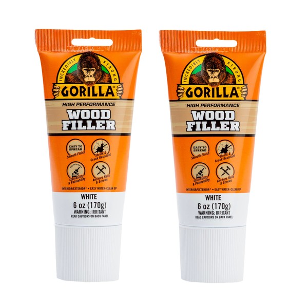 Gorilla All Purpose Wood Filler, White Wood Filler, 6 Ounce Tube (Pack of 2) - Water Resistant for Indoor or Outdoor Projects and Repairs