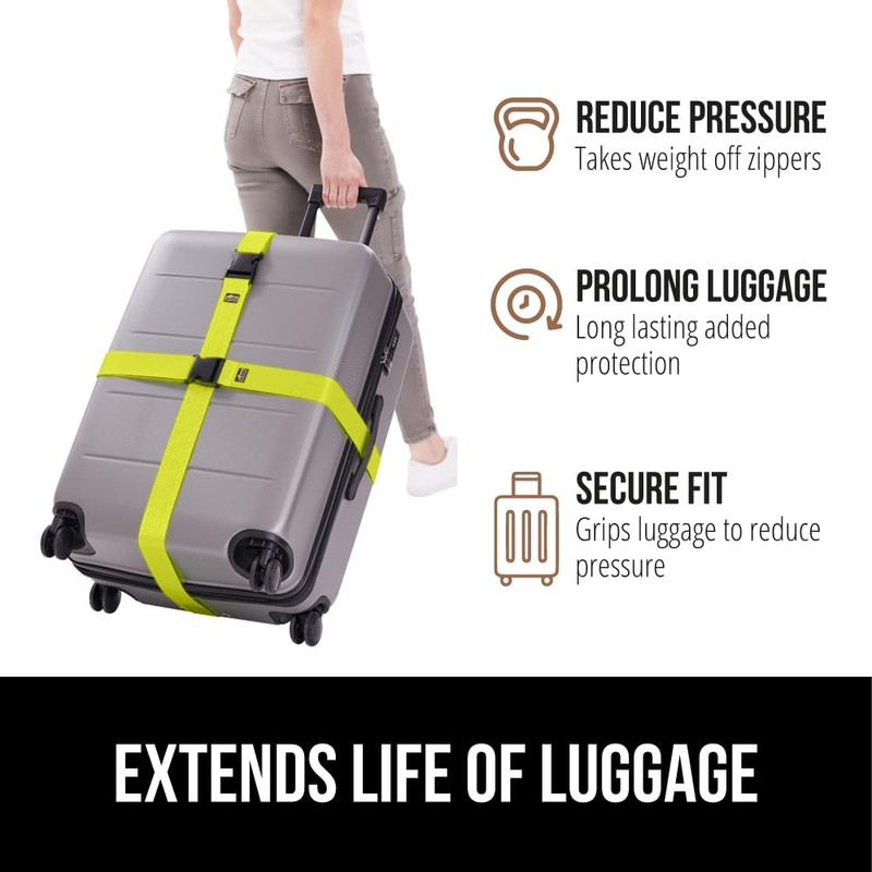 - HELP PROLONG LIFE OF YOUR LUGGAGE: take pressure off your suitcase zippers by adding luggage straps; straps take weight off the closure points and help prolong the lifespan of your luggage; straps are constructed from high quality polyester; recommended to spot clean