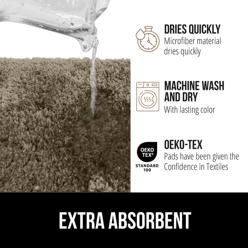 - EXTRA ABSORBENT, DRIES QUICKLY: extra absorbent bath rug helps keep your floors clean and dry; premium microfiber material absorbs excess water and moisture from the bath, shower and sink while drying quickly and effectively