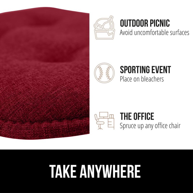 Gorilla Grip Tufted Chair Cushions, Memory Foam Pads for Dining Room, Kitchen Table, Office Desk, Rocking Chairs, Stay in Place Backing, Comfortable Seat Cover Pad Cushion, Set of 6, 16x17, Wine Red