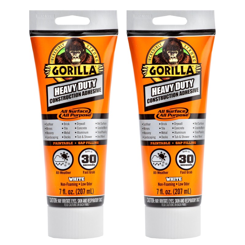 Gorilla Heavy Duty Construction Adhesive, 7 Ounce Squeeze Tube, White, (Pack of 2)