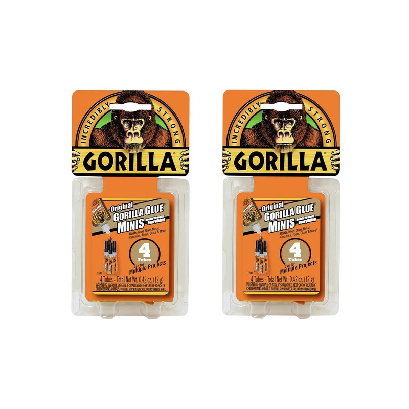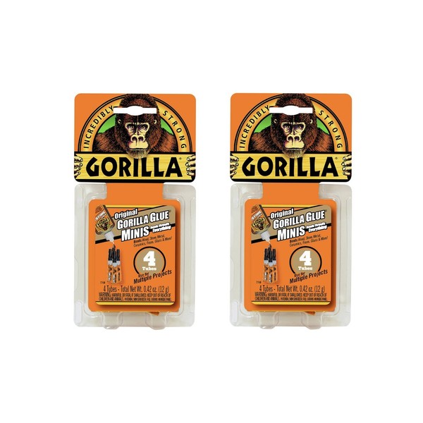 Gorilla Glue's famous formula is now available in a 4-pack of convenient, single use tubes! Same great Gorilla Glue now in a handy, single use tube! Gorilla Glue is incredibly strong and 100-Percent waterproof so it does not break down when exposed...