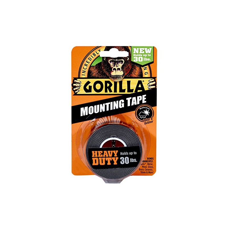 - The double-sided adhesive of the Gorilla Heavy Duty Mounting Tape delivers a heavy duty bond that holds up to 30 lbs. Gorilla Heavy Duty Mounting Tape is perfect for indoor and outdoor projects and sticks to smooth and rough surfaces.