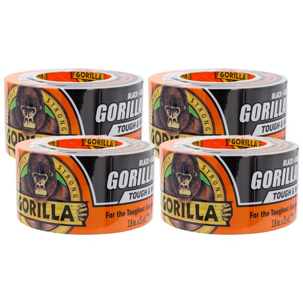 Gorilla Tape Tough & Wide, Black Tape, 2.88" x 25 yd (Pack of 4) - Heavy Duty and Weather Resistant for Indoor or Outdoor