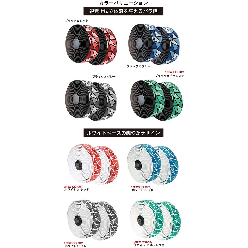 - A stylish bar tape with a black base and Nami printing technology on the tip. The simple design and color give a calm impression