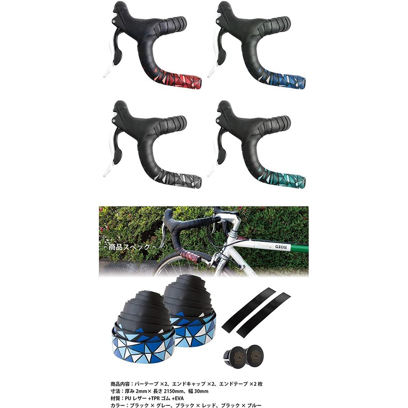 - Product Contents: Bar tape x 2, end cap x 2, end tape x 2; Dimensions: Thickness 0.08 inch (2 mm) x Length 84.6 inch (2 mm) x Width 85.3 inch (2 mm) / Material: PU leather + TPR rubber + EVA