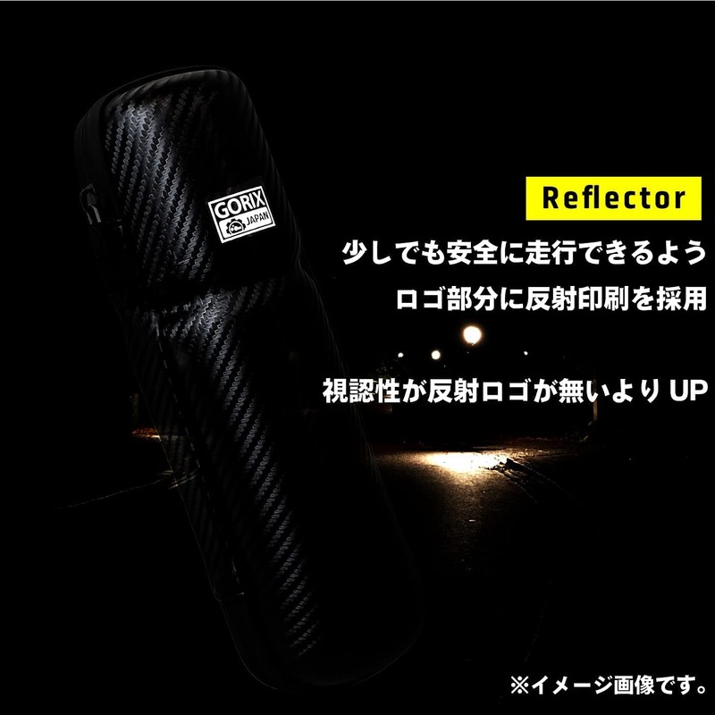 - [Attaches to Bottle Cage] Comes with a bottle cage, so you can use the free bicycle space without wasting it. [Carbon Pattern] Sporty, luxurious carbon pattern fits any vehicle. [Reflective Night Logo] Reflective printing on the logo for a safer ride even in a little time. Increases visibility without reflective logos