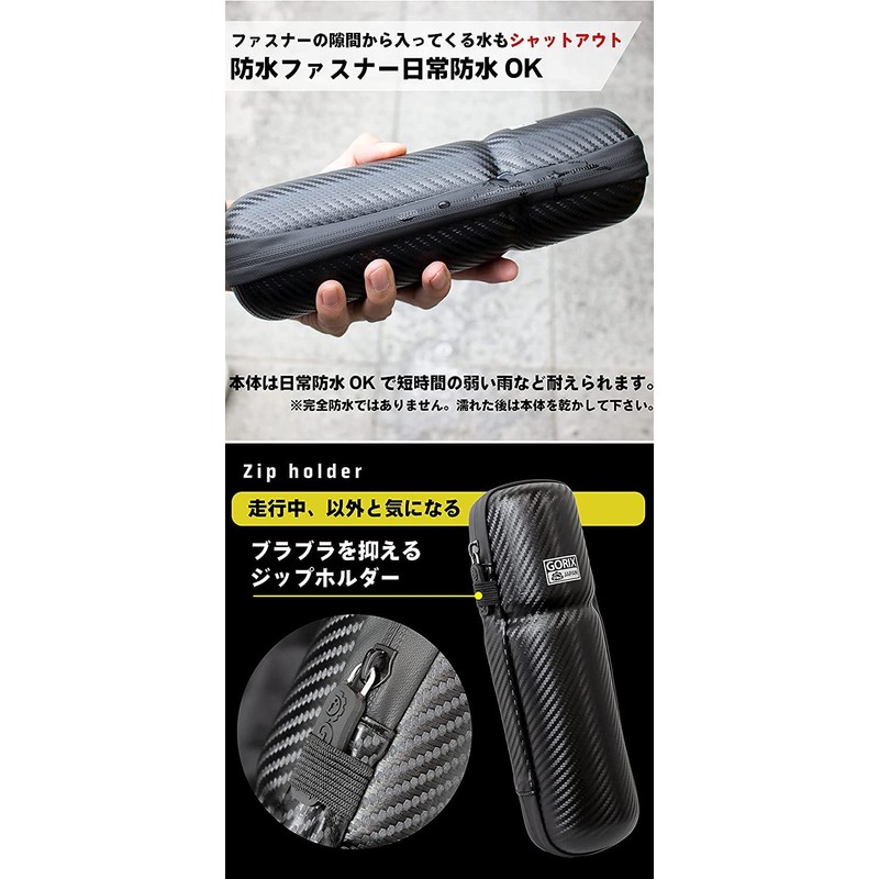 - Waterproof Zipper: Uses a waterproof zipper, so water entering from the gap in the zipper part. The main unit is waterproof for everyday use and can withstand short periods of light rain. This product is not completely waterproof. Please dry the main unit after getting wet. Zip Holder: The zip closure prevents the zip from rolling around while driving