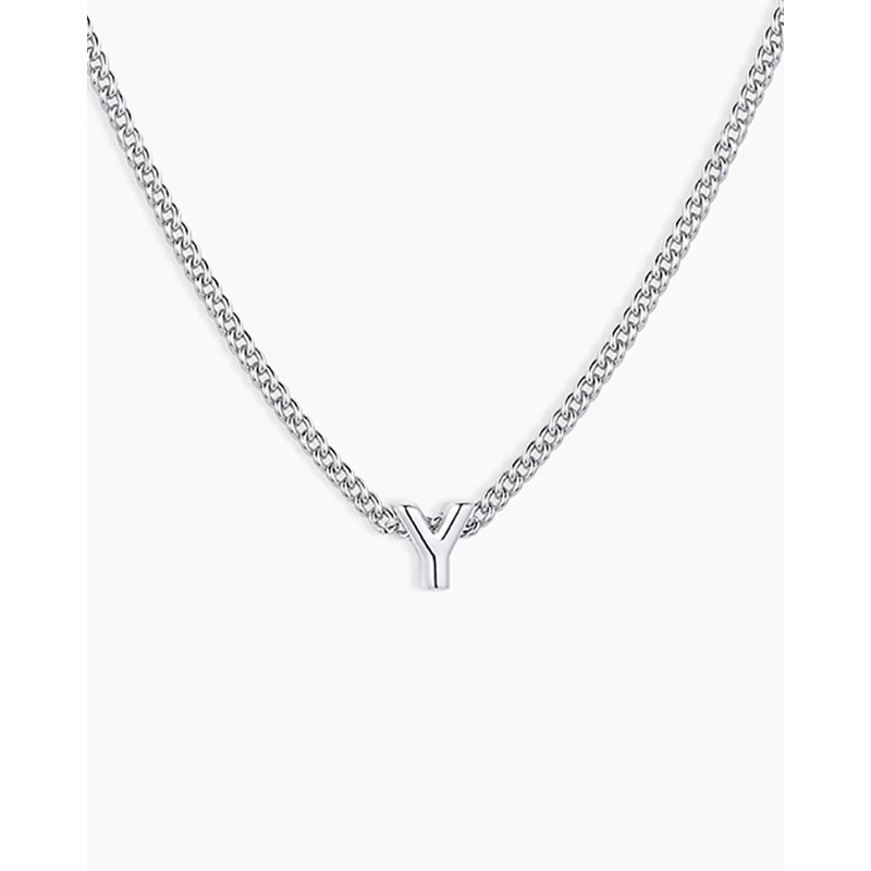 gorjana - Wilder Mini Alphabet Necklace - 18k Gold-Plated or Silver-Plated Brass - Personalized Initial Charm - Secure Closure, Adjustable Length - Timeless Elegance, 16inch, Silver Plated, No