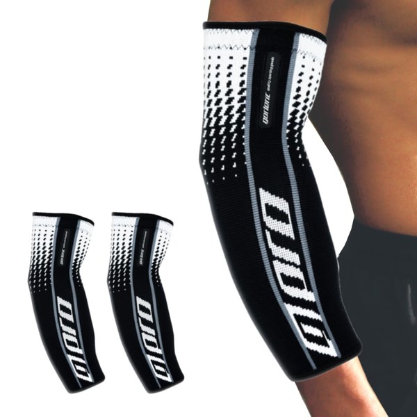 GORLETIC Elbow Compression Sleeves (Pair) - Elbow Support - Non-slip and Elastic for Calisthenics, Fitness, Gym and Epicondylitis - Men/Women, black/white, L