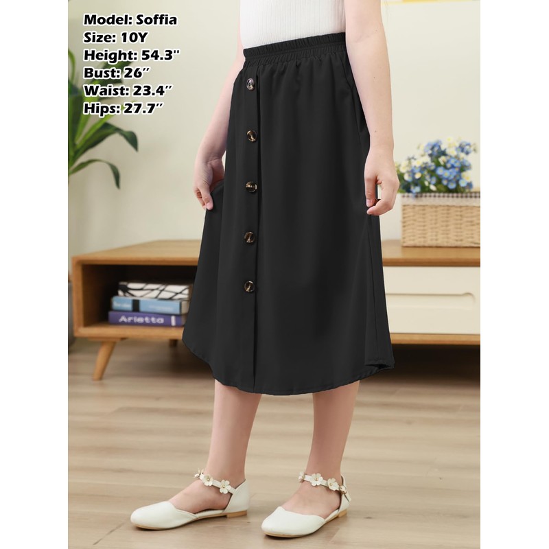 GORLYA Girls A-Line Elastic High Waist Pleated Swing Maxi Skirt with Pockets for 4-14T (GOR1104,Black,12Y)