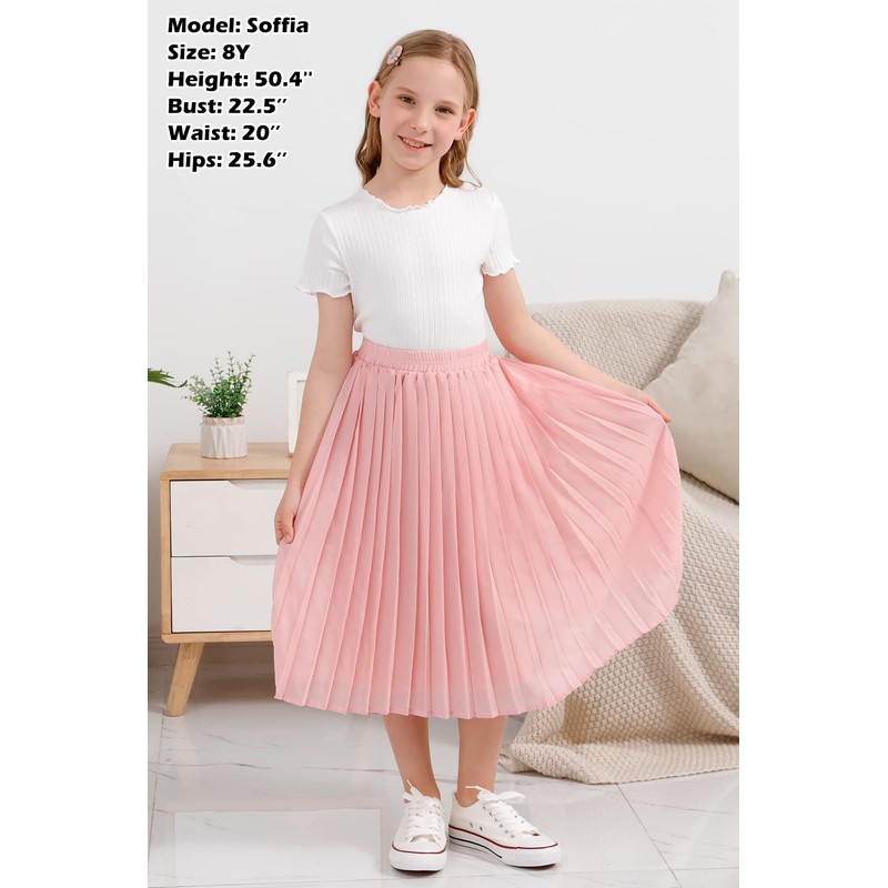 GORLYA Girls Chiffon Pleated Elastic High Waist A-Line Boho Swing Maxi Long Skirt 4-14T (GOR1115,Pink,10Y)