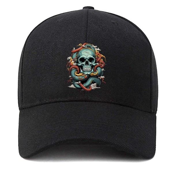 - La gorra de béisbol Snake Skull está hecha de 100% algodón de primera calidad, que es suave, cómoda y transpirable para uso todo el día. Cierre de correa ajustable, talla única para la mayoría de tamaños de cabeza.