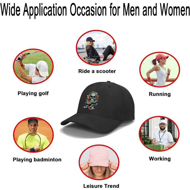 - Cómodo uso diario. Personaliza la tapa en tu cabeza con un práctico cierre de metal, asegurando la máxima comodidad y un ajuste seguro en todo momento. No te preocupes por que los sombreros deportivos se caigan mientras Snake Skull, corre o participa en otros deportes, ¡simplemente disfruta!