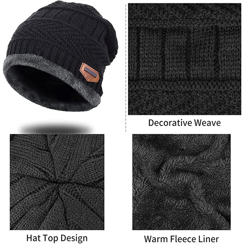 Gorro invierno hombre Set Gorro y Bufanda para Hombre (Negro)