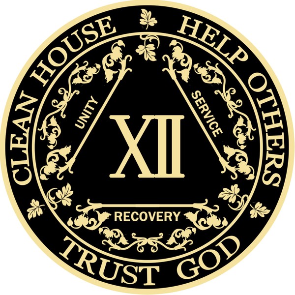 GOSIN Black & Gold 1-10 Years Alcoholics Anonymous Medallion AA Coin Capsule Included (Twelve Years)