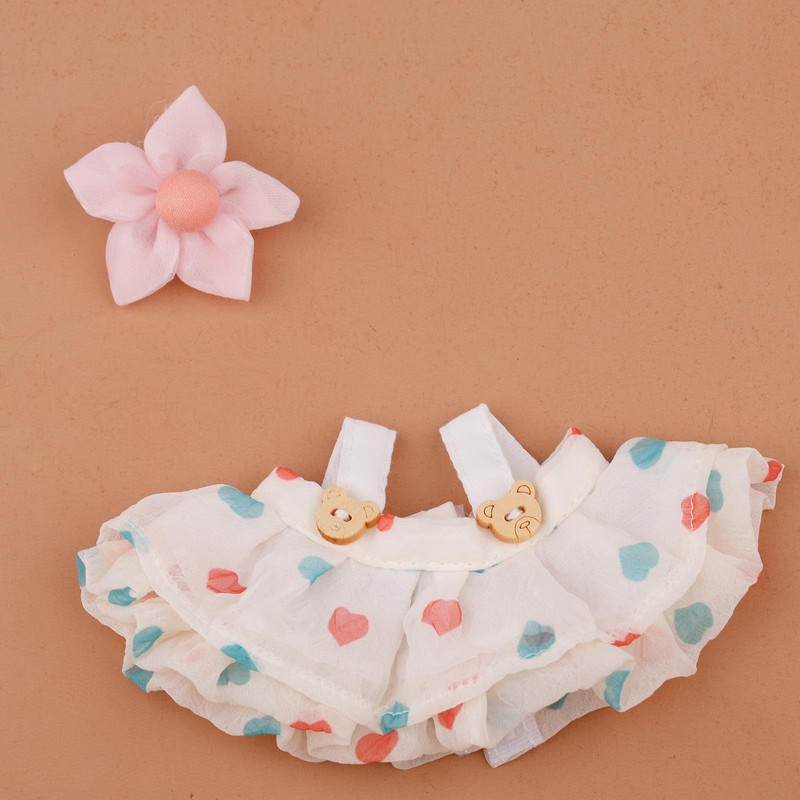 - Adorable Sweet Style: Designed to give your doll an irresistibly elegant and charming look, this doll dress features love heart print design paired with a charming pink flower hair clip.