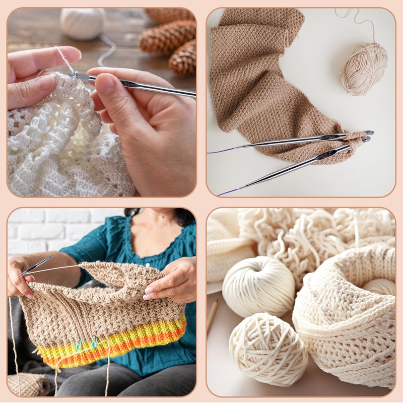 - Widely Used: This crochet hooks set is perfect for all kinds of crocheting, knitting, or DIY crafting, you can used them make scarves, hats, socks, sweaters, gloves, blankets, carpets bouquets, home decor, and more.