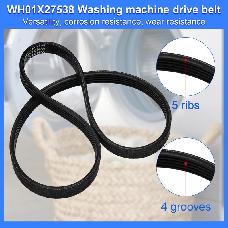 Gosknor Washer Drive Belt Replacement for GE & Hotpoint, Black WH01X27538 Washing Machine Belt Accessories Parts Compatible with GE GTW465ASN1WW GTW465ASN3WW & Hotpoint HTW240ASK5WS HTW240ASK6WS