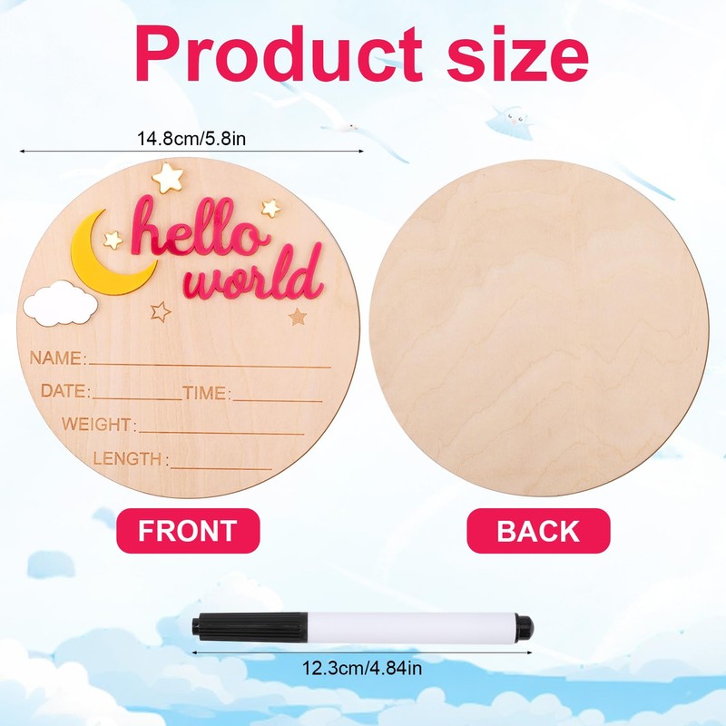 - Package Content: You will receive 1 wooden hello world newborn sign, with a diameter of about 14.8cm/5.8in, and comes with a writing pen. You can use it to record some important information about your baby.