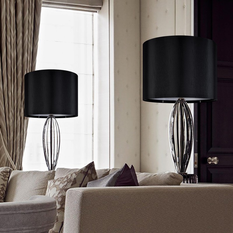 - Refresh Your Lamshade:Black lamp shades medium-The table lamp shade replacement is a medium cylindrical shade made of blue faux silk-like fabric and lined with PVC (plastic) to diffuse even and soft light. blue lamp shade create a comfortable and welcoming atmosphere