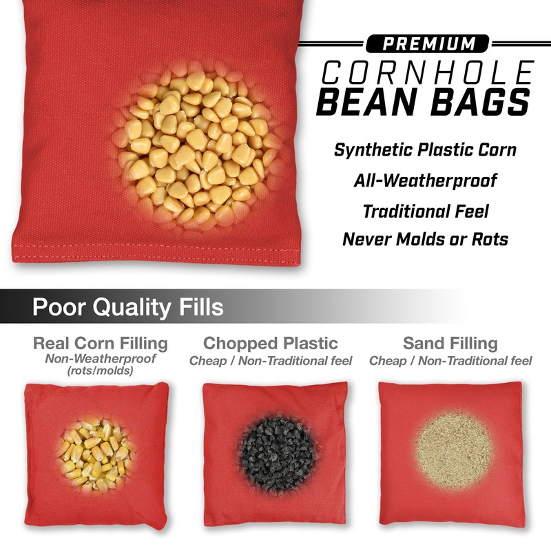 - PICK THE EXACT COLOR SET YOU WANT: Dual sided colorful corn hole bags perfect for tailgating team colors