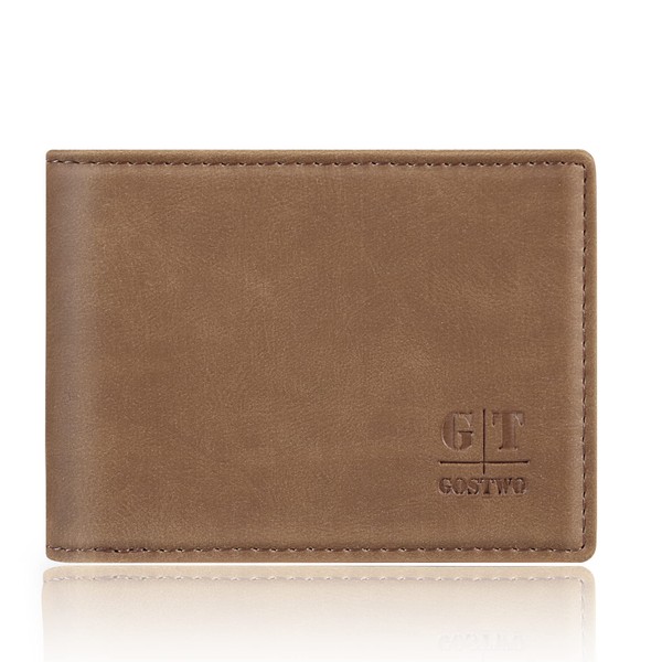 Gostwo Slim Wallet for Men Minimalist Leather ID Window Front Pocket Bifold Wallet, Khaki, one size, Minimalist