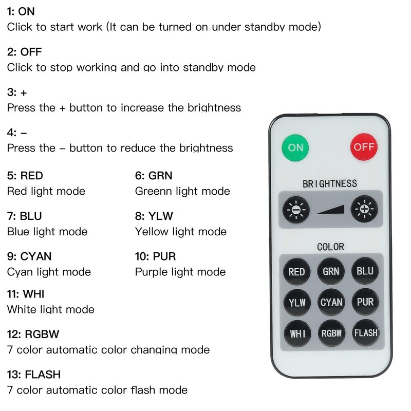 - ☀Note: When you receive the light, please push the button to turn on the light, then put it under direct sunlight for charge 1 day. After that, the light will work normally. If your light couldn't work, please contact us back through your order, we will provide support for you.