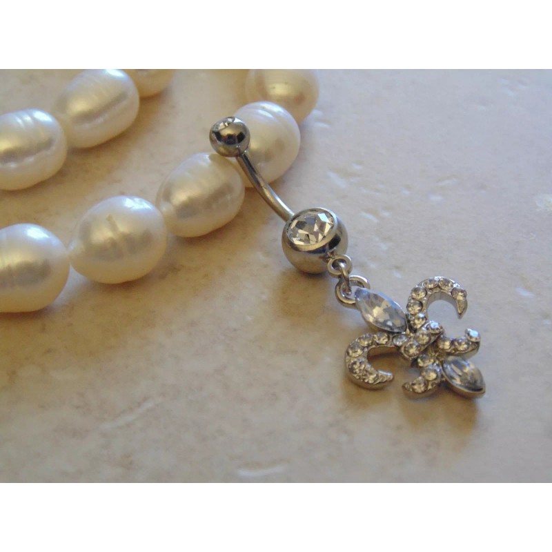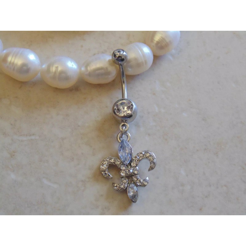 Got Piercing Multi Paved Cubic Zirconia Fleur De Lis Dangle Navel/Belly Ring.