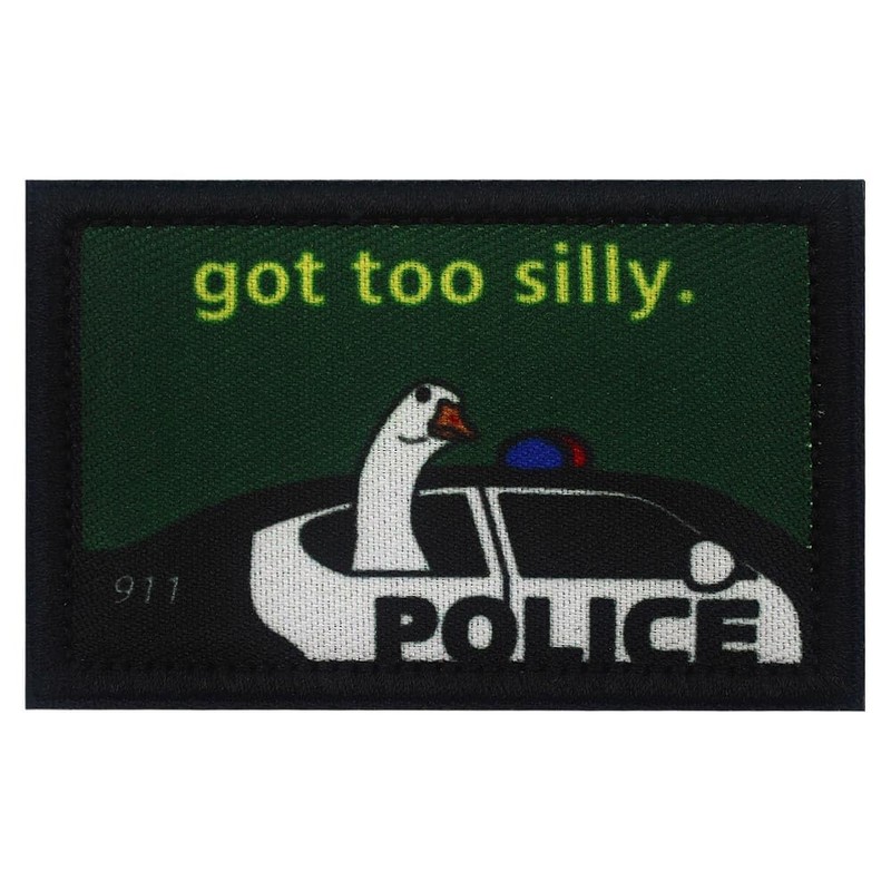 Got Too Silly Goose in Police Car Printed Patch 2x3.1 Inches Hook & Loop Funny Stickers Applique for Hats Shirts Jackets Backpacks (Got Too Silly)
