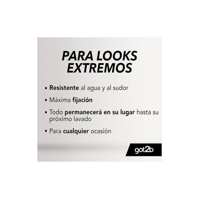 Prueba el gel fijador glued de got2b resistente al agua. Este gel ayudará a brindarte una fijación tan fuerte que tu estilo durará hasta el siguiente día, y tu cabello se mantendrá en su lugar. Para mejores resultados, utiliza got2b glued resistente al agua sobre cabello húmedo. Para un look con rizos: aplica un poco de gel sobre la yema de los dedos, espárcelo a lo largo del cabello y retuerce las puntas de cada mechón a tu gusto. Características: uso sobre cabello húmedo, ultra fijación, resistente al agua, duración por más tiempo.