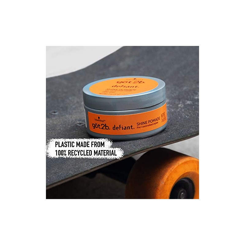 got2b Defiant Shine Pomade will tame you unruly hair and add some texture, too! This formula will leave your hair looking moisturized and hydrated. For high shine and light hold, just apply to dry or damp hair. This product is ideal for shorter to medium-length hair. Best of all, our packaging is made from recycled plastic! Be whoever you want 2b with got2b Defiant Shine Pomade!