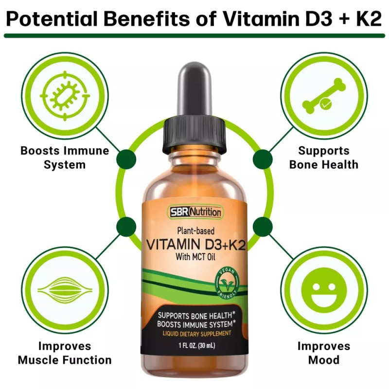 CALIDAD PREMIUM: Cada gota líquida contiene 1,000 IU de vitamina D3 y 25 mcg de vitamina K (como MK-7), la forma de K2 con la mayor biodisponibilidad. Además, nuestra base líquida incluye aceite MCT, que ofrece beneficios como el aumento del metabolismo y niveles de energía mejorados. Cada botella tiene 180 dosis, con 5 gotas por dosis.