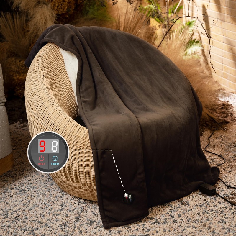 GOTCOZY Heated Blanket Electric Throw 50''X60''- Electric Throw Blanket with One Touch Button 10 Heating Level & 9 Time Settings Heating Blanket, Machine Washable (Brown)