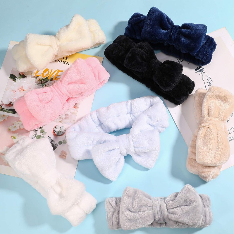 GOTH Perhk 4 Pack Spa Bowknot Hair Bands, Coral Fleece Makeup Headband Elastic Head Wrap for Washing Face Shower Yoga Sports Skincare(Beige, Pink, Blue, Navy Blue)