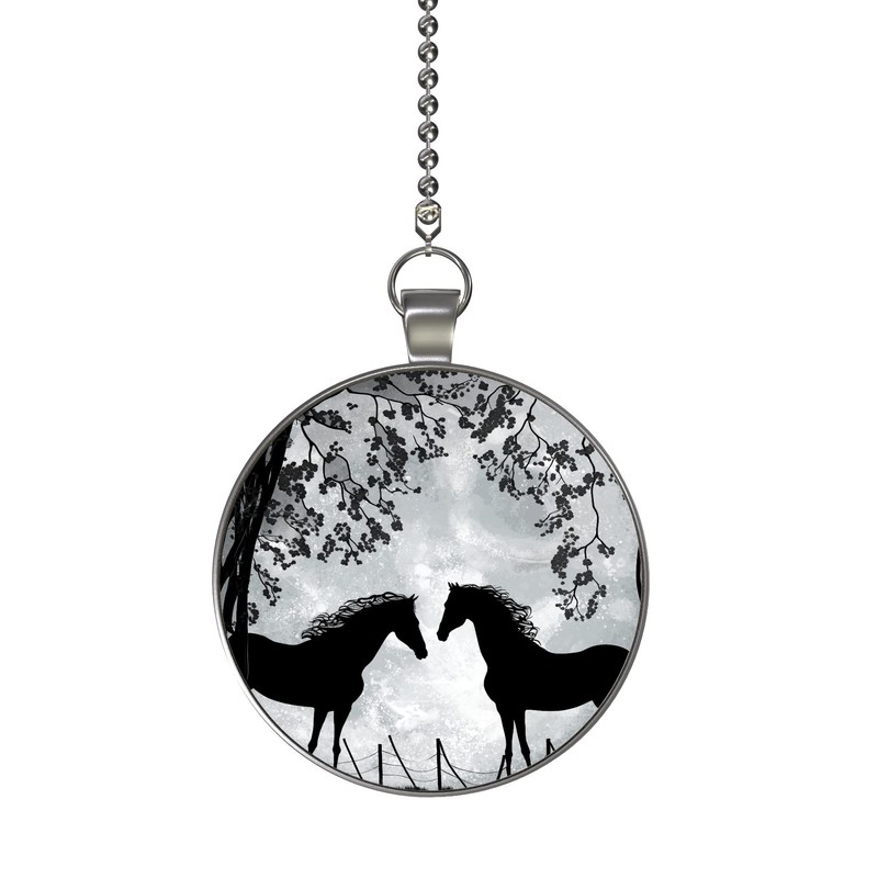 Gotham Decor Horse Pair in Spring Glow in The Dark Ceiling Fan and Light Pull Chain Pendant