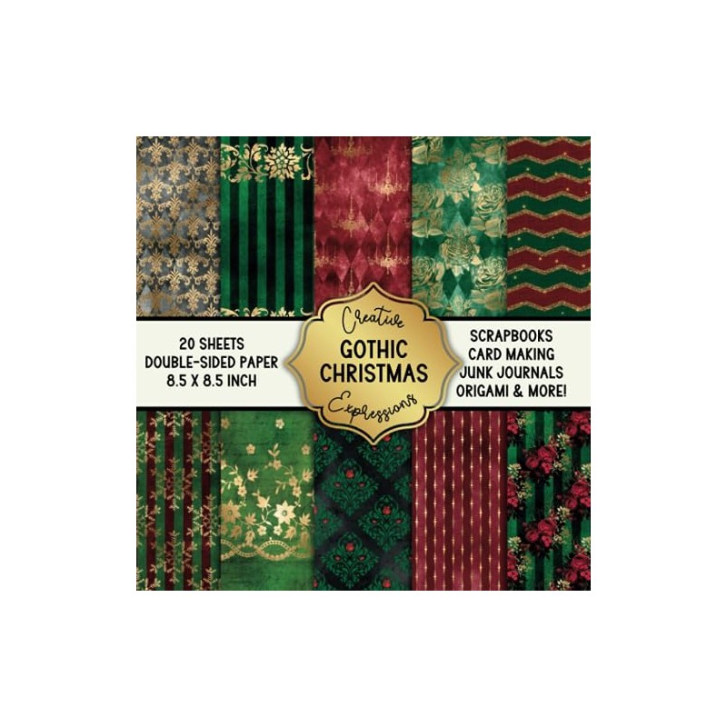 Gothic Christmas Patterned Double-Sided Craft Paper, 8.5" Square: Decorative Specialty Paper for Scrapbooks, Junk Journals, Origami, Cardmaking