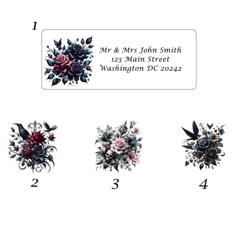 Gothic Flowers Return Address labels - Set of 30