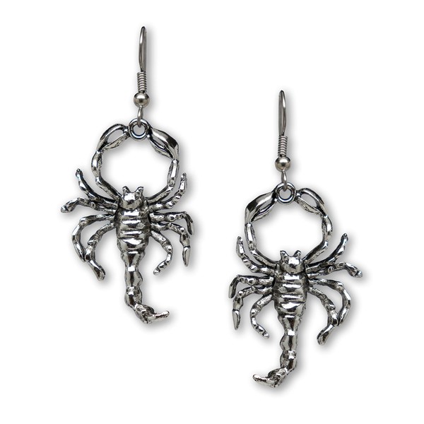 Gothic Scorpion Dangle Earrings Silver Finish Pewter
